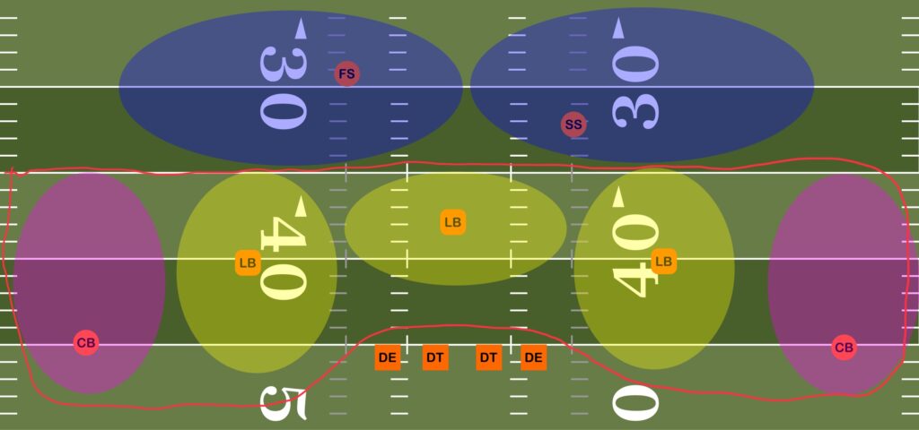 Sure, there are some major differences with the two defenses overall, such as there being a 4-man pass rush in a traditional Cover 2 as opposed to the 1-man forward line in a 4-5-1 formation. Which is due to the fact that there is a line of scrimmage in American football that gives defenses close proximity to the ball – incentivising them to send more players to apply pressure. In European football, applying that much pressure is likely a death sentence. The ease at which professionals will play through and over teams means that teams will sacrifice the pressure for deep defenders (which explains why most European football formations have 4 or 5 defenders whereas NFL teams will routinely leave anywhere between 0 and 3 players deep).