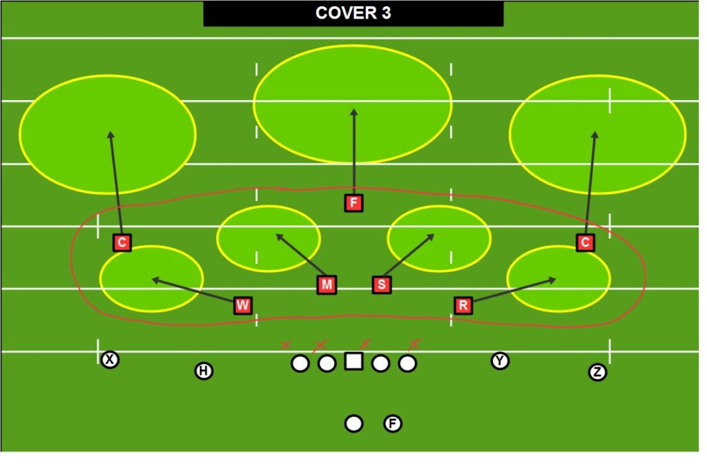 As for the Cover 3 defense, there is no added pressure (in bases defenses) and the intermediate part of the field is simply sacrificed to better protect the deep parts of the field.