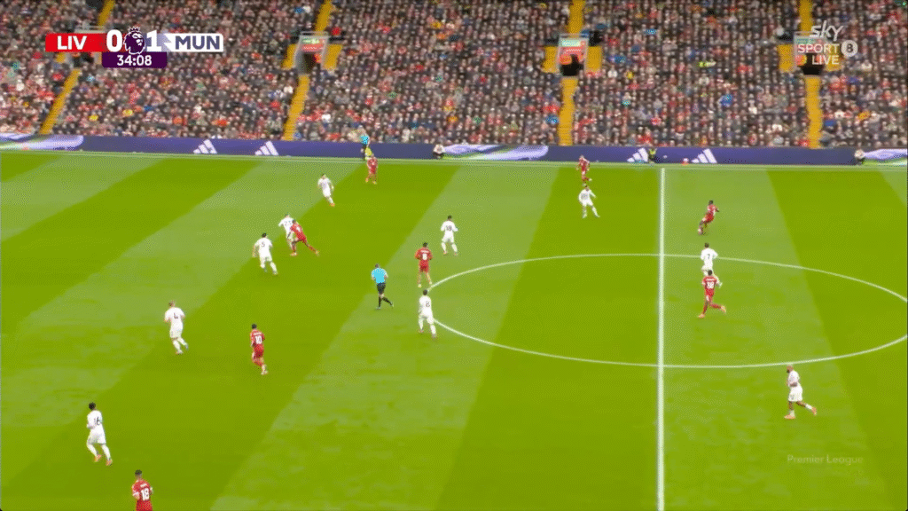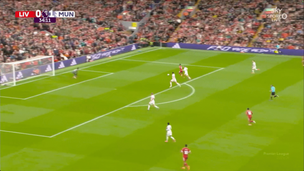 And this leads to the main argument of this piece. Our ideas and coverage of sport is influenced by something called recency bias. A cognitive bias where people place too much emphasis on recent events or the latest information when making decisions or forming opinions, often ignoring more relevant historical data or long-term trends. So, when I saw Ibrahima Konate play this pass (below) through three lines of defense against Manchester United, I formed the opinion that his progressive play had improved a lot, and he was capable of repeating such play in future games.