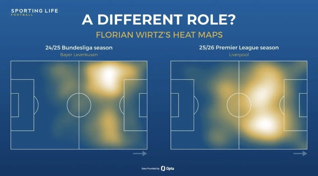 Now as much as this may sound like Liverpool can be let off the hook for these performances, that is far from the case. It might not be their opinion that Wirtz is worth £116 million in their system right now, but if they’re going to pay it then it is up to them to make it work. This is where the second part of what makes a transfer successful takes centre stage – the incumbent system and how the new signings become a part of it. If you’re going to sign players from clubs that have designed their systems around these players and shown that they can be effective when those circumstances are right, then you must have an idea of how you will create your own circumstances that will also get the most out of them too.